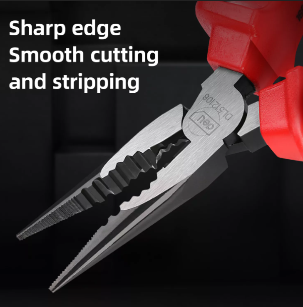 | Hãng sản xuất: Deli Tools Tên sản phẩm: Kìm nhọn Kích thước: 6″ 150mm |